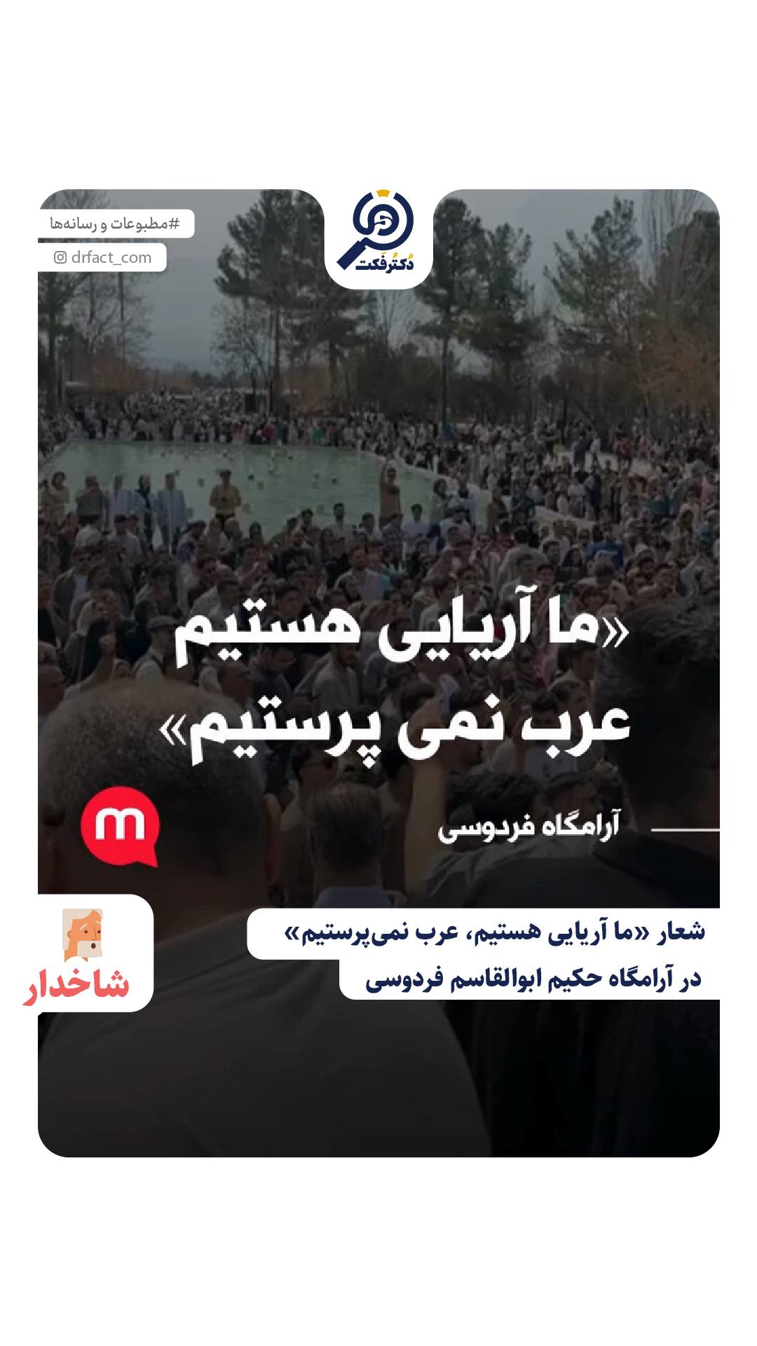 👨⚕️دکتر فکت: بنابراین، شعار «ما آریایی هستیم عرب نمیپرستیم» به منظور نشان دادن ضدیت با اسلام، در کنار آرامگاه فردوسی که خود مسلمان و از ارادتمندان به پیامبر اسلام و حضرت علی(ع) بوده است، شعاری #شاخدار است.