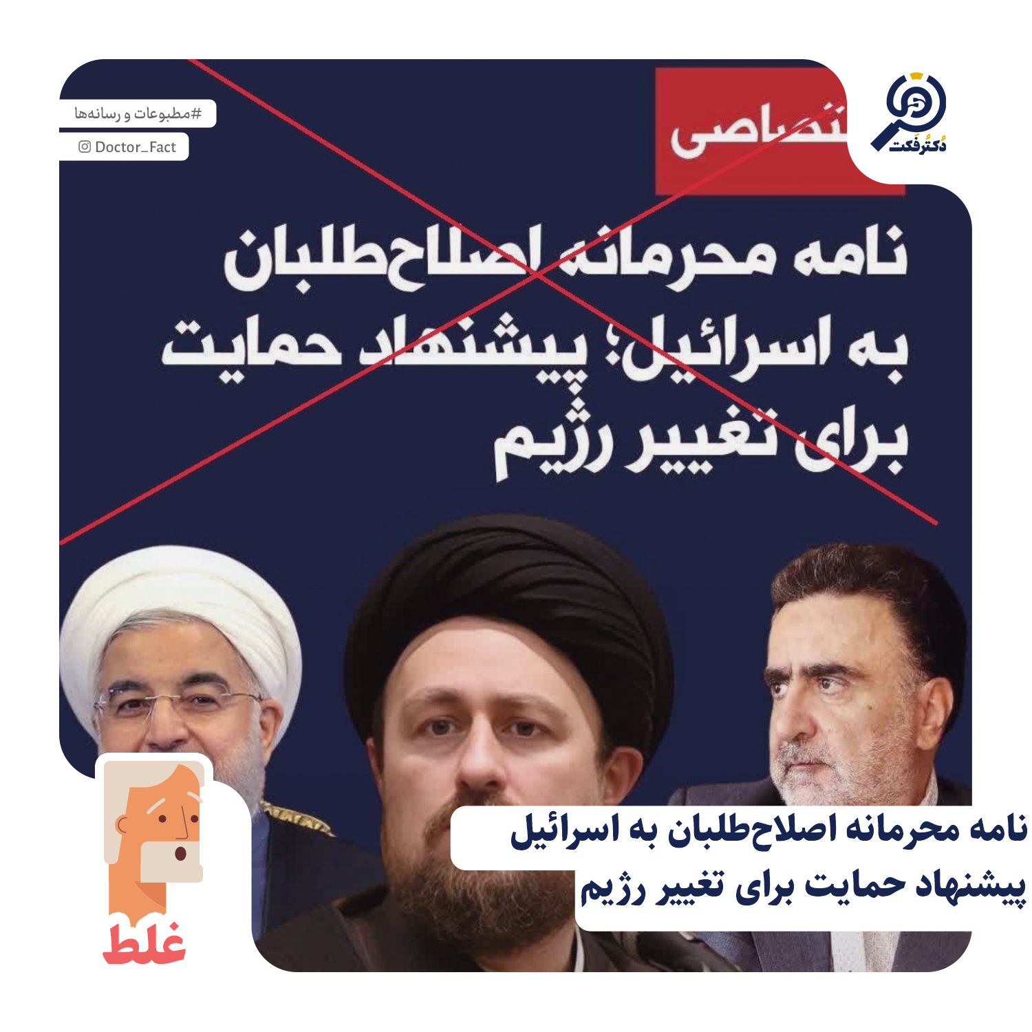 👨⚕️دکتر فکت: بنابراین ادعای نامه محرمانه اصلاحطلبان به اسرائیل، پیشنهاد حمایت برای تغییر رژیم، #نادرست است.