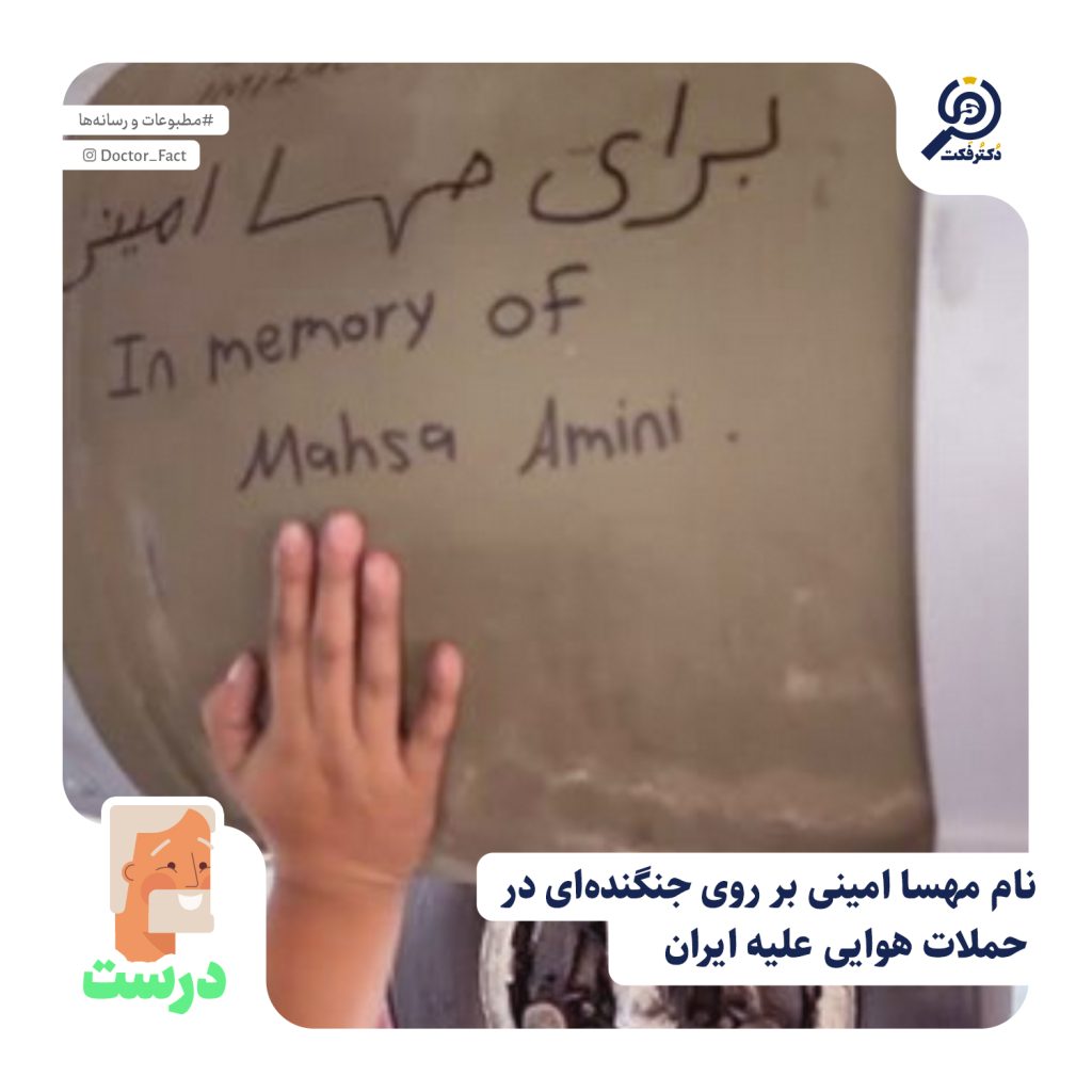 دکتر فکت: حک شدن نام مهسا امینی بر روی جنگندهای برای حمله هوایی به ایران، #درست است.