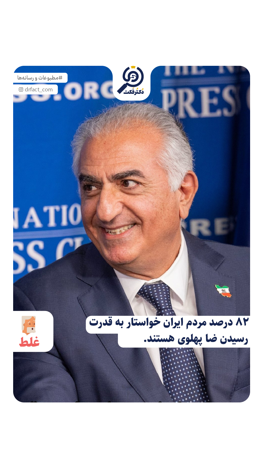 دکتر فکت: بنابراین، تمایل ۸۲٪ مردم ایران برای حکومت رضا پهلوی، #نادرست است.
