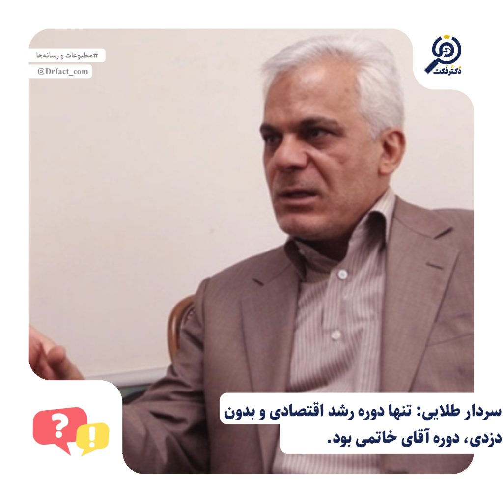 سردار طلایی: تنها دوره رشد اقتصادی و بدون دزدی در جمهوری اسلامی، دوره خاتمی بوده است.